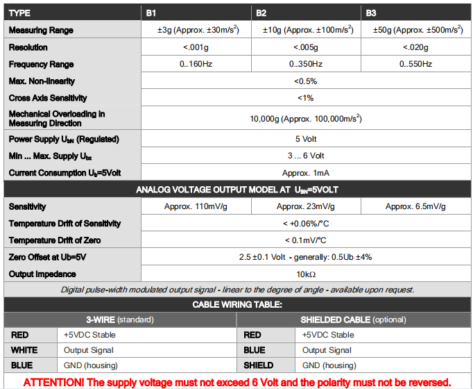 The B1, B2, and B3 sensors are capacitive spring mass accelerometers with integrated sensor electronics. Requiring very low power consumption these are characterized by a high degree of longterm stability. Resonant peaks are minimised by means of a special gas-dynamic damping in the primary transformer.